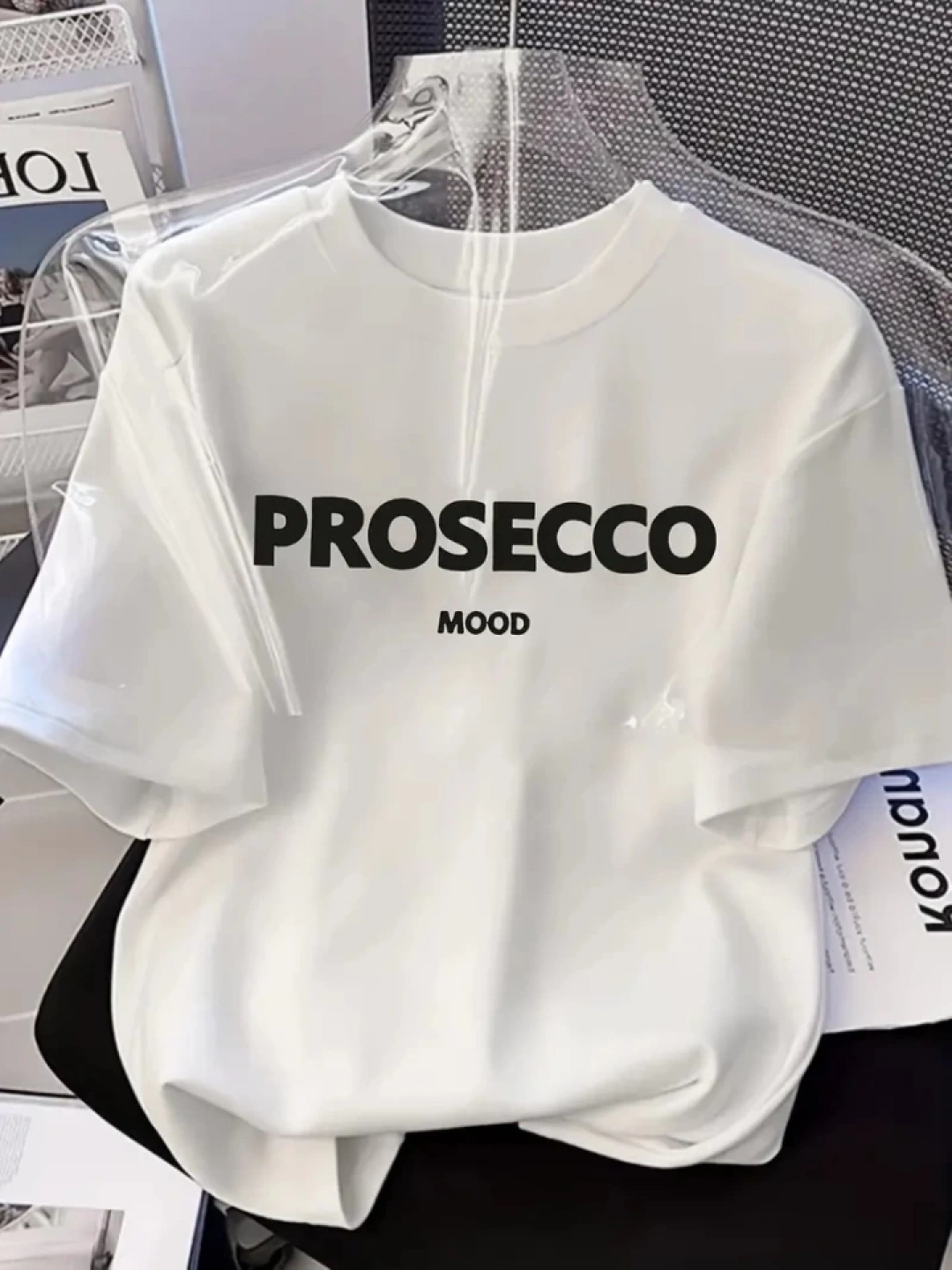 Baskılı Oversize Bisiklet Yaka T-shirt - Beyaz