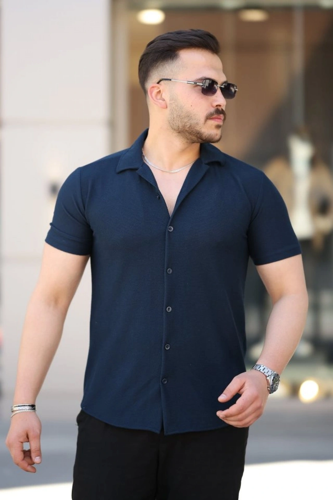 Erkek Kısa Kollu örme Kumaş Pamuklu Gömlek