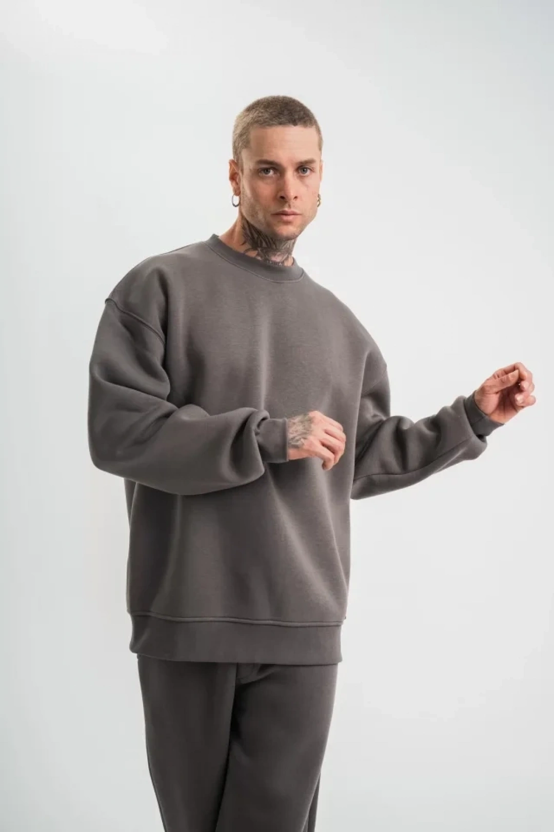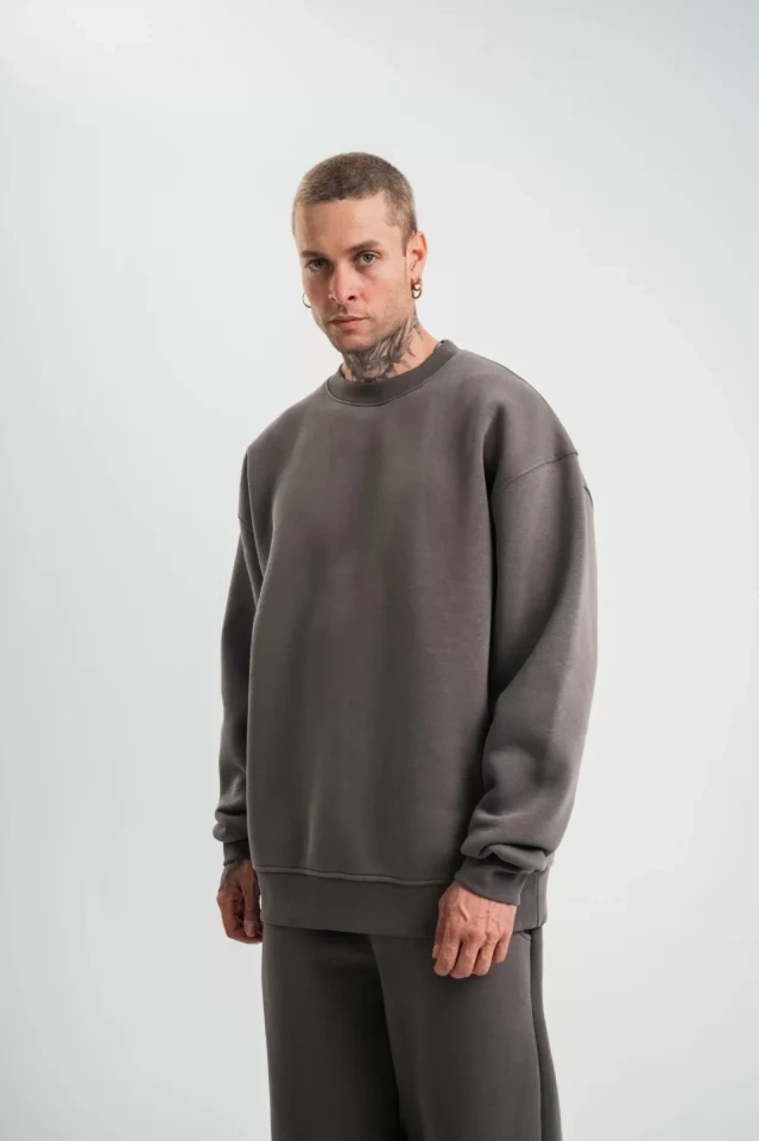 Uzun Kol Bisiklet Yaka Basic SweatShirt - Füme